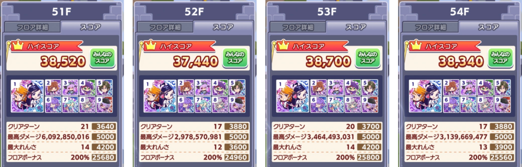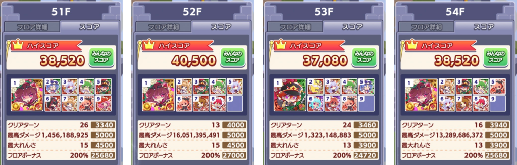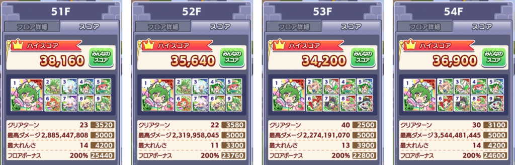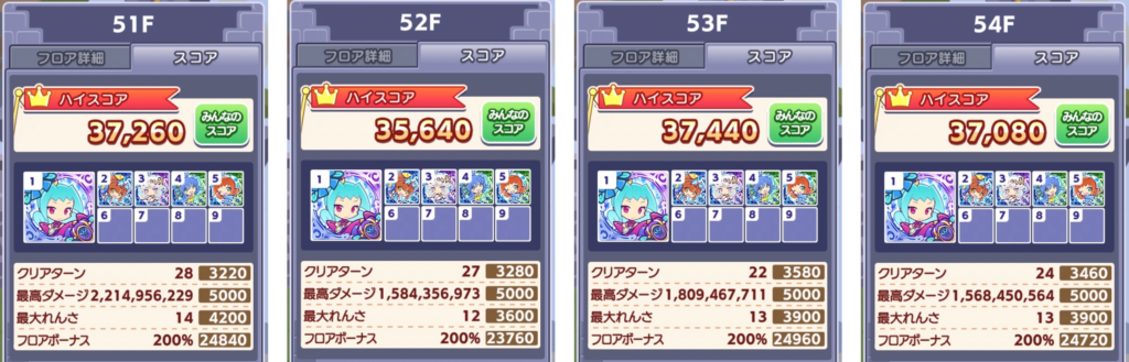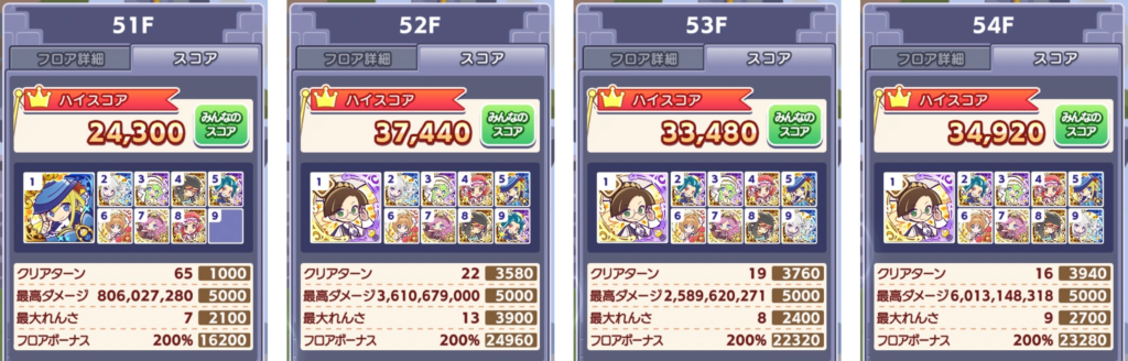 まずは攻撃型のデッキについて軽く解説します。51-54はある程度の耐久と各ステージ10ターン以内の撃破が出来るほどの攻撃力があれば突破できます。その為には